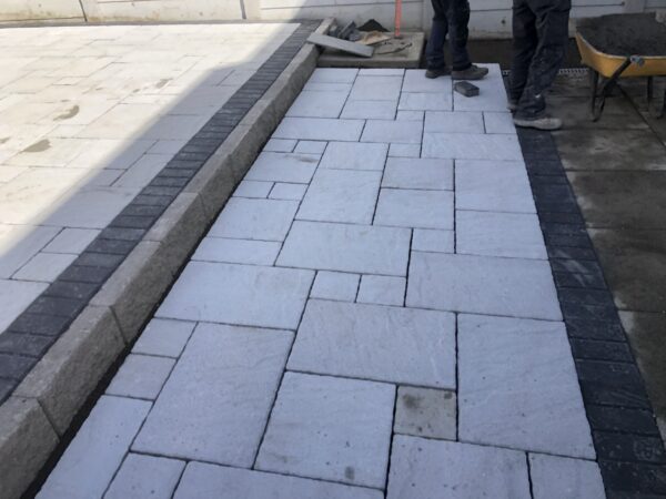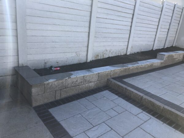 Bricklaying Work → Brick Walling, Bricklaying Work, Natrual grey rock face solid 4 inch, Paving Work, Rockface solid 9 inch Worth 600 x 300 Candra grey sandstone, Step up patio