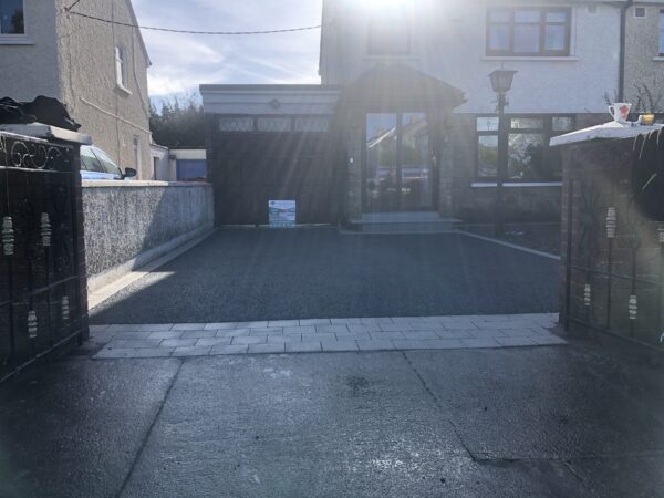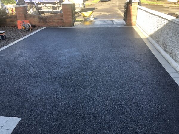 Supplied and installed a block paving border set in concrete, Supplied and installed a new apron entrance, Installed a base-wearing course of tarmac, Set levels to direct surface water run off, Machine vibrated and power rolled to lock in place