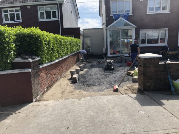 Dug out and removed the area, Graded off the surface, Redesigned the layout of the area, New drainage system, Raised base levels in the area, Adjusted the overall levels of the area, Supplied and installed MOT Type 1 foundation, New step(s), Built new flower bedsTarmac / Asphalt Installation