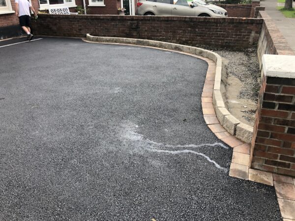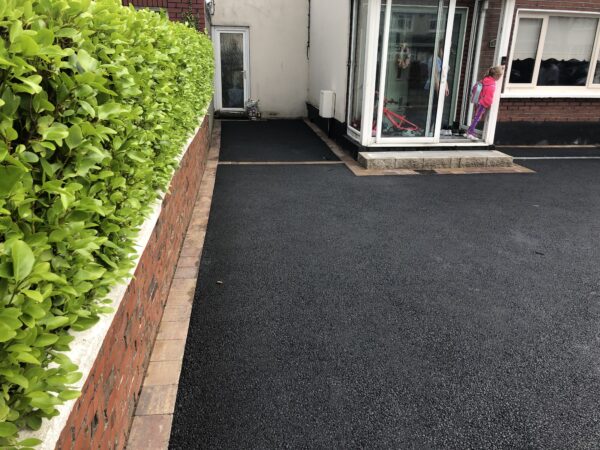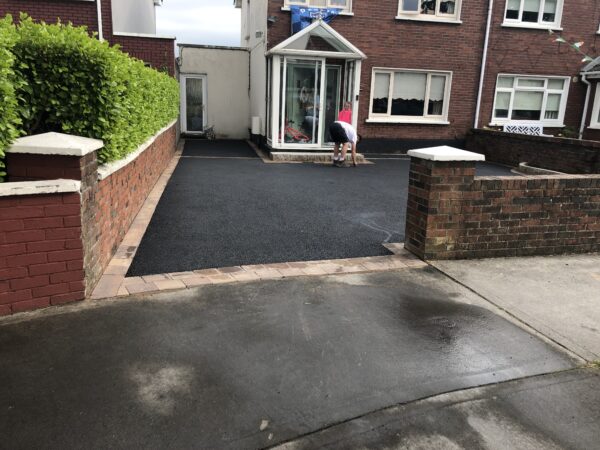 Supplied and installed a block paving border set in concrete, Supplied and installed a new apron entrance, Installed a base-wearing course of tarmac, Installed a new tarmac surface over the area, Set levels to direct surface water run off, Machine vibrated and power rolled to lock in place
