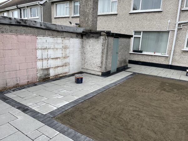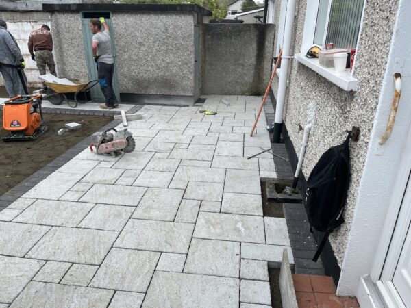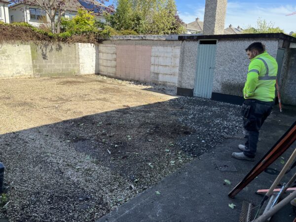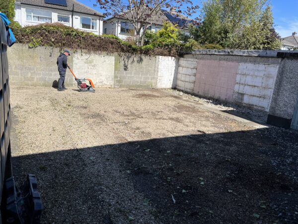 Dug out and removed the area, Graded off the surface, Cut out damaged areas, Repaired any damaged areas, Chipped out the perimeter of the area, Redesigned the layout of the area, New drainage system, French gravel drains fitted, Supplied and installed 804 stone base, Supplied and installed MOT Type 1 foundation, Supplied and installed membrane sheeting, New step(s), Fitted a new hard-standing concrete areaSlabbing Installation