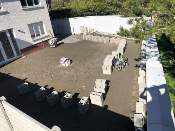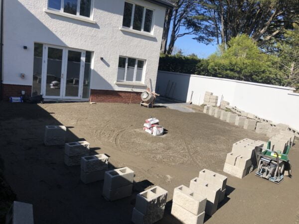 Bricklaying Work, Patio Slabbing, Rockface solid 9 inch block with silver granite 600 x 300 paving slab