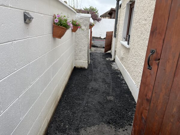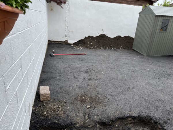 Dug out and removed the area, Graded off the surface, Repaired any damaged areas, Chipped out the perimeter of the area, Redesigned the layout of the area, New drainage system, Aco channel drains installed, French gravel drains fitted, Adjusted the overall levels of the area, Supplied and installed 804 stone base, Supplied and installed MOT Type 1 foundation, Supplied and installed membrane sheeting, New step(s), Installed new kerbing set in concrete, Built new flower bedsTarmac / Asphalt Installation