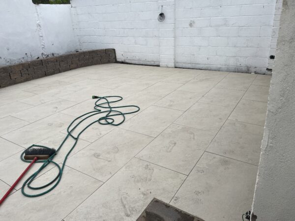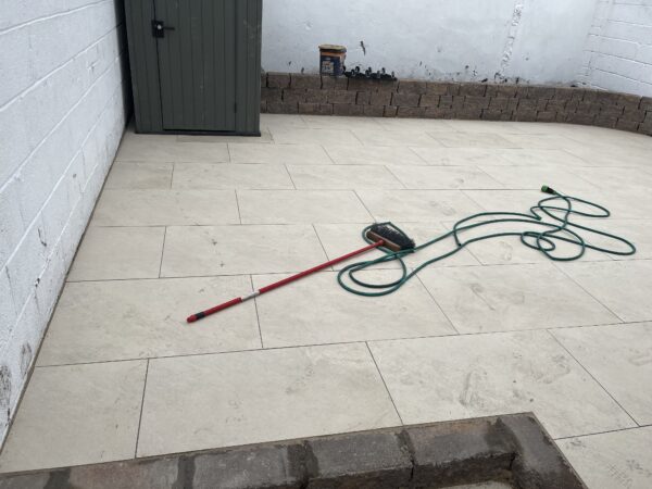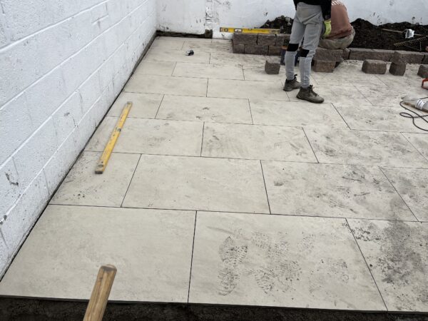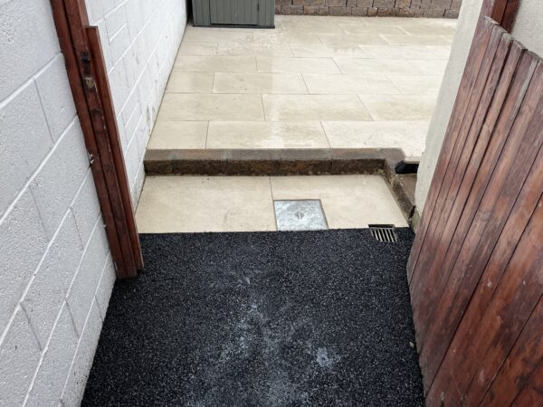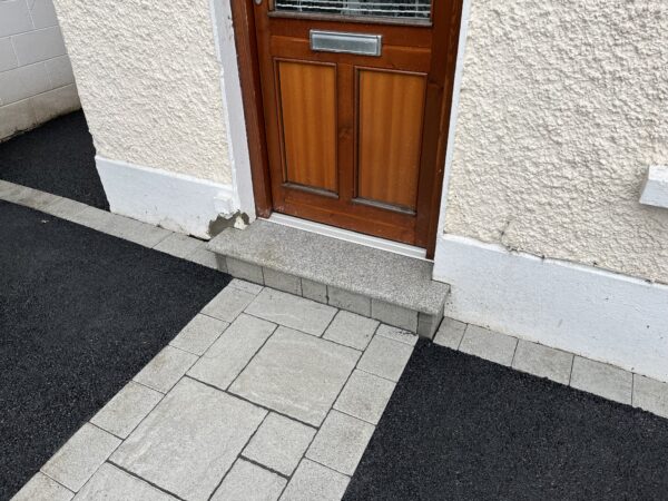 Bricklaying Work, Granite → Granite border, Patio Slabbing, Patio Slabbing → Porcelain Tiling, Silver granite border and pathway, Step up patio, Tarmac and Asphalt Work, Tarmac and Asphalt Work → Tarmacadam