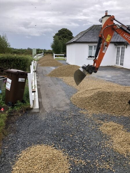 Dug out and removed the area, Graded off the surface, Redesigned the layout of the area, New drainage system, Raised base levels in the area, Supplied and installed 804 stone base, Built new flower bedsGravel Installation