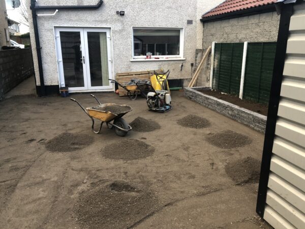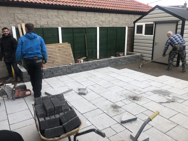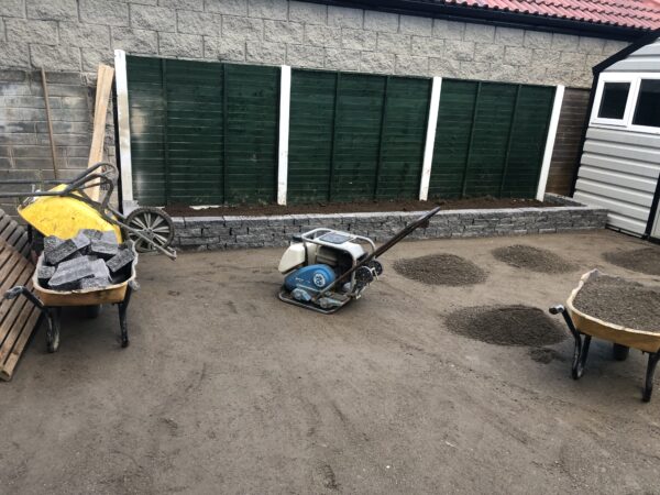 Dug out and removed the area, Graded off the surface, Cut out damaged areas, Repaired any damaged areas, Redesigned the layout of the area, New drainage system, Adjusted the overall levels of the area, Supplied and installed 804 stone base, Built new flower bedsSlabbing Installation